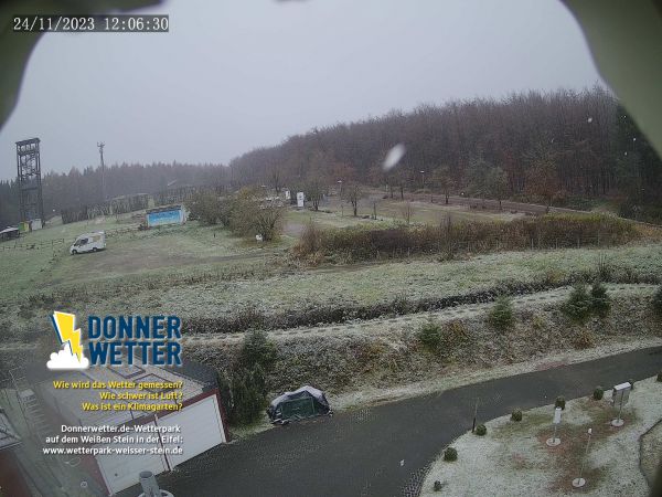 Das Foto zeigt die ersten Flocken am Freitagmittag auf dem Weißen Stein in Hellenthal (Eifel):