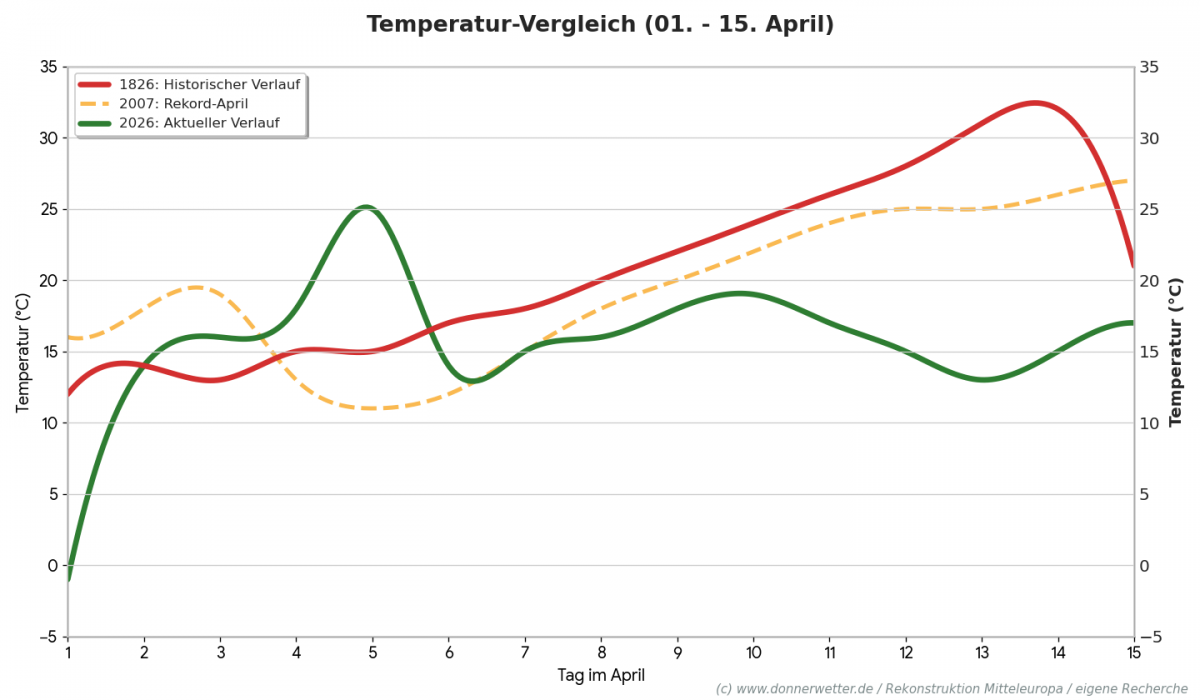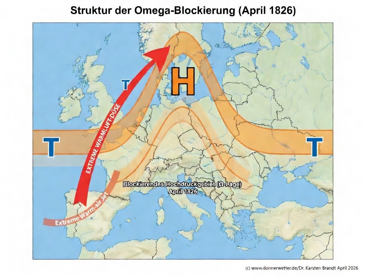 Gehen wir genau 200 Jahre zurück. Der April 1826 startete als extremes 5-Sigma-Ereignis mit Rekordhitze und Dürre im Frühjahr in Europa.