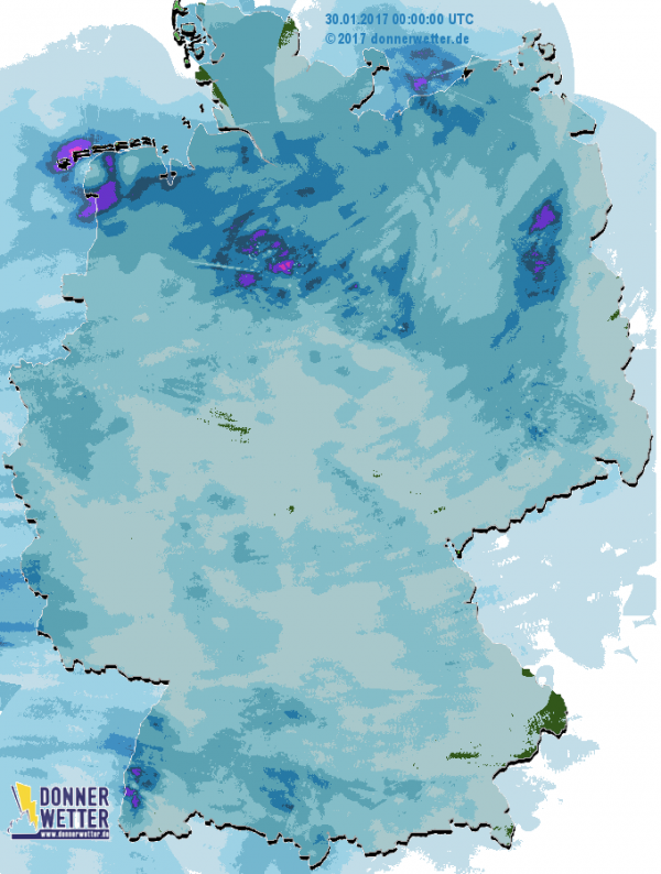 Zu Wochenbeginn (30.01.) überquerte dann das Niederschlagsgebiet eines nach Norddeutschland ziehenden Tiefs unser Land.