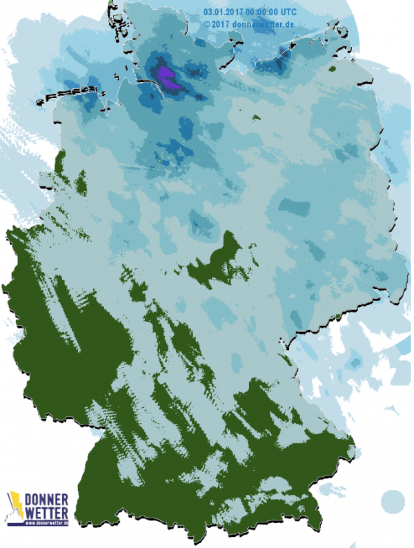 In Hamburg fielen allein am 03.01. Tagesniederschlagsmengen von 20-25 l/m² (s. Karte links).