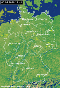 ![]() | | Radarbild 08.04.2020 Meist wolkenloser Himmel und strahlender Sonnenschein |