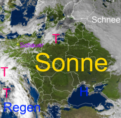 ![]() | | Satellitenbild 03.04.2017 Schauer und Gewitter in Süddeutschland |