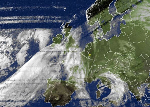 Auf dem Satellitenfoto vom heutigen Nachmittag zeigt sich ein kräftiger Wolkenwirbel über Italien, hier sorgt ein Tief über der Mitte des Mittelmeerstaates für verbreitet wechselhaftes Schauerwetter mit teils sehr kräftigen und ergiebigen Niederschlägen und regional auch kurzen Gewittern. Ein Tief über dem Atlantik bringt mit seinen Ausläufer oft dichte Wolken ins westliche Europa. Von den Britischen Inseln, über große Teile Frankreichs bis in den Norden und Nordwesten der Iberischen Halbinsel herrscht oft nasses, jedoch relativ mildes Wetter.