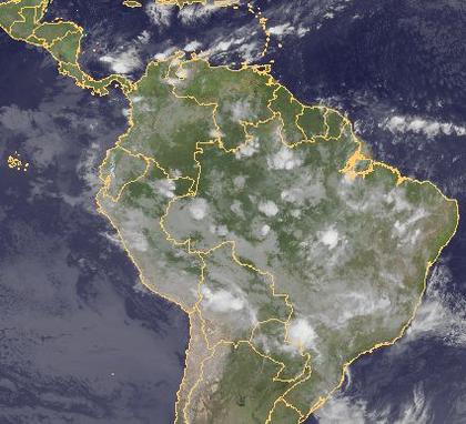 Über Brasilien haben sich kräftige Schauer und Gewitter entwickelt. Diese enstehen jahreszeitlich bedingt in Zusamenhang mit der innertropischen Konvergenzzone.