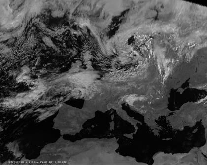 Auf dem heutigen Satellitenfoto ist zu erkennen, dass die nördliche Hälfte Europas zum überwiegenden Teil unter Tiefdruckeinfluss liegt, häufig ist es dabei sehr wechselhaft mit zeitweiligen Schauern, zum Teil aber auch mit heiteren Abschnitten. Nach Süden und Südosten herrscht dagegen verbreitet Hochdruckeinfluss mit meist freundlichem Wetter.