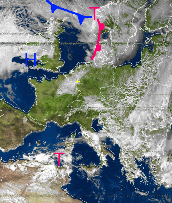 Freundliches und trockenes Wetter herrscht dank des Hochs bei den Britischen-Inseln über Teilen Großbritanniens, Frankreichs und in Südwesteuropa.