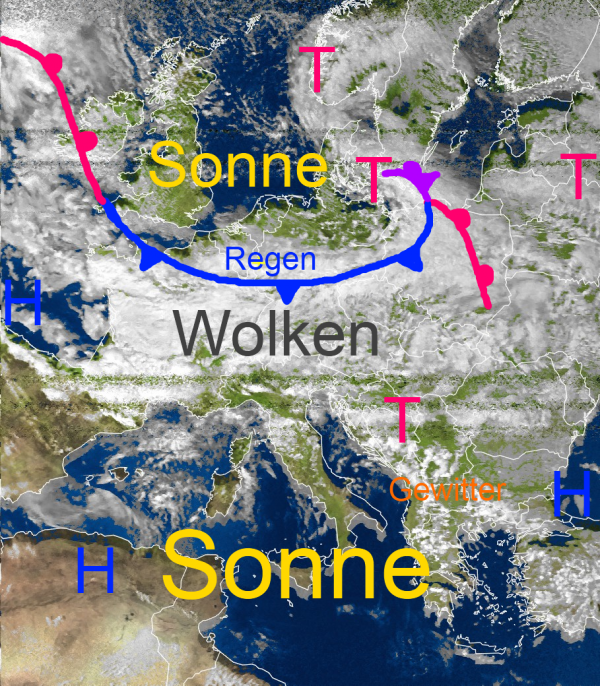Viel Sonne und blauer Himmel gibt es nach wie vor über Südeuropa. Auch über der Nordsee hat sich ein sonniges Fenster aufgetan.