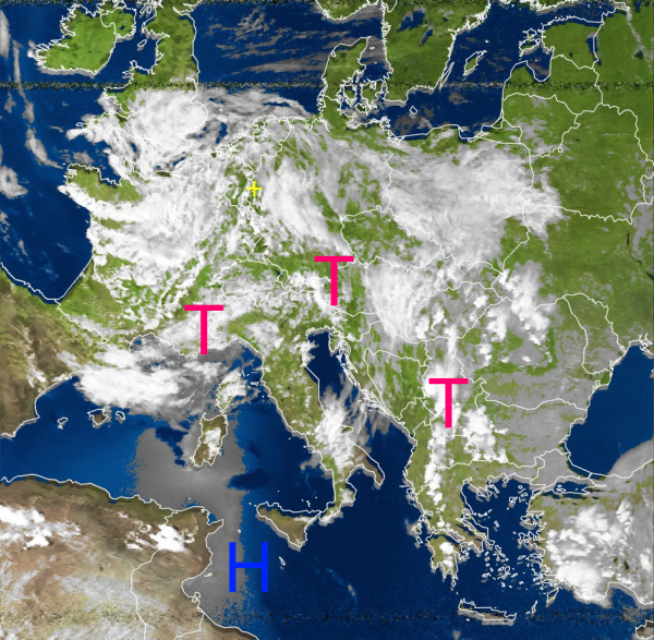 Über dem Balkan, der Türkei, sowie vereinzelt auch über Nordafrika haben sich Gewitterzellen entwickelt.