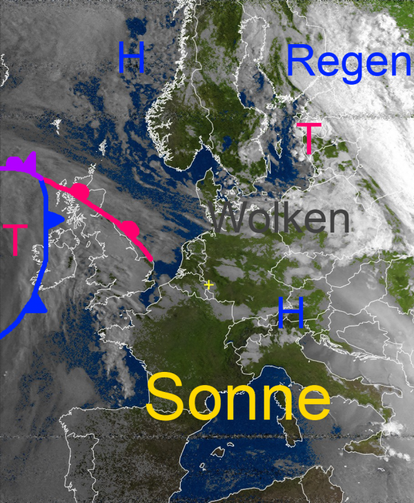 Hochdruckeinfluss sorgt über Mitteleuropa dafür, dass sich die Wolken immer mehr auflösen und der Sonne Platz machen. Somit können die Temperaturen vor allem in der Südwesthälfte Deutschlands wieder in den sommerlichen Bereich klettern. Das hartnäckige Tief über dem Baltikum lenkt hingegen noch dichtere Wolken in den Nordosten. Somit bleiben die Temperaturen hier zunächst noch verhalten.