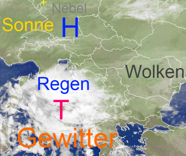 Das Tief über Italien sorgt für turbulentes Wetter über dem zentralen Mittelmeerbereich. In Pescara in Mittelitalien sind in den vergangenen 24 Stunden knapp 140 Liter auf den Quadratmeter gefallen. Auch in Griechenland rund um Athen haben Gewitter kräftige Regenfälle gebracht.