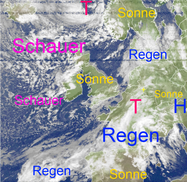 In Deutschland steht ein Luftmassenwechsel bevor. Das Randtief über Frankreich zieht bis morgen Abend mit seinem Regengebiet über unser Land hinweg nach Polen. Dahinter wird der Weg frei für kältere Polarluft. In höheren Lagen kanns dann wieder schneien.