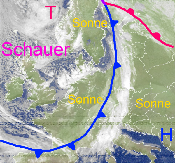 Hinter der nach Osten abgewanderten Kaltfront strömt hochreichend polare Meeresluft nach Mitteleuropa. Neben kurzen sonnigen Abschnitten ziehen immer wieder Staffeln von Schnee-, Schneeregen- und Graupelschauer übers Land. Mancherorts kann es dabei blitzen und donnern. In kräftigen Schauern ist die Sichtweite stark eingeschränkt. Auf Staßen und Gehwegen droht erhebliche Glätte. Da es in der kommenden Nacht verbreitet zu Frost kommt, muss mit überfrierender Nässe gerechnet werden. Also große Vorsicht beim Nachtausflug!