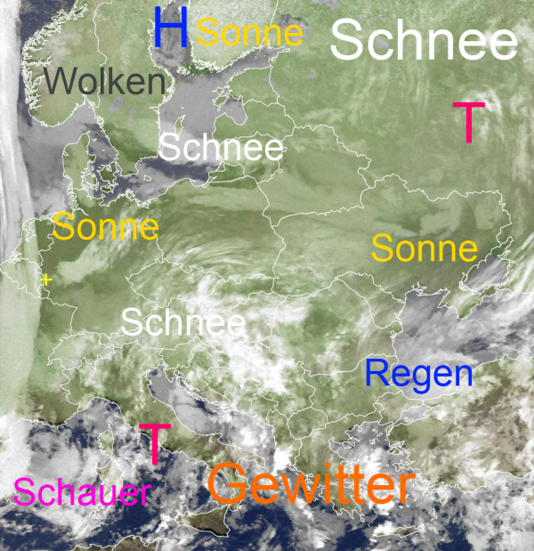 Zwischen dichteren Wolken mit Regen oder Schnee findet man in Europa auch immer wieder sonnige Inseln.