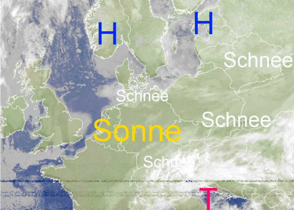 Über dem Kontinent herrscht derzeit große Kälte. Gebietsweise schneit es auch. Dazwischen gibt es allerdings auch blauen Himmel und strahlender Sonnenschein.