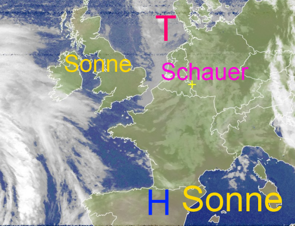 Während sich das Tief bis morgen nach Skandinavien entfernt, wandert das Hoch über Spanien nach Mitteleuropa und beschert uns morgen schon reichlich Sonnenschein und steigende Temperaturen.
