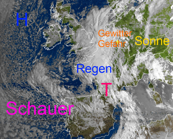 Während in großen Gebieten unseres Landes heute die Sonne strahlt und die Temperaturen in den frühsommerlichen Bereich steigen können, brauen sich im Westen im Tagesverlauf immer mehr Schauer- und Gewitterwolken zusammen.