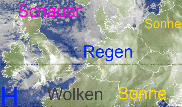 Die Sonne hat sich in den Süden zurückgezogen. Aber auch in Polen und über den Britischen-Inseln findet man zwischen dichteren Wolken noch sonnige Plätze.