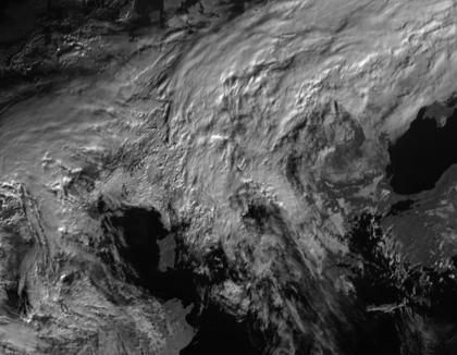 Tief 'Scarlett' mit Zentrum über Belgien sorgt für dichte Wolken und Schneeregen oder Schnee über West- und Mitteleuropa. Im Südosten Europas ist es unter Hochdruckeinfluss freundlicher.