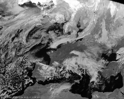 Auf dem heutigen Satellitenfoto sind die dichten Wolken von Tief 'Tim' über Italien zu sehen. Hierbei entwickeln sich häufig Schauer, gebietsweise auch einzelne Gewitter. Sonst herrscht auch im nördlichen Skandinavien Tiefdruckeinfluss mit dichten Wolken und Regen oder Schnee. Im übringen Europa dominiert dagegen Hochdruckeinfluss mit meist freundlichem und trockenem Wetter.