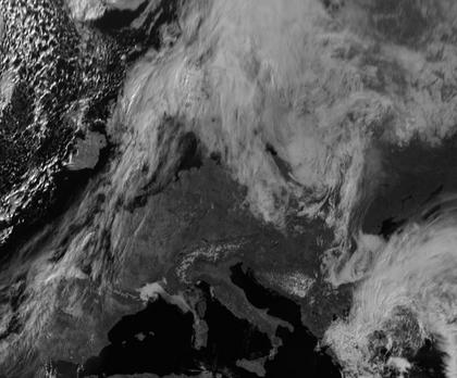 Hoch 'Peggy' sorgt in weiten Teilen West- und Südwesteuropas für freundliches und trockenes Wetter. Auch nordöstlich des Schwarzen Meeres ist es unter Hochdruckeinfluss freundlich. In Nord- und Nordwesteuropa herrscht dagegen Tiefdruckeinfluss vor. Bei Jan Mayen befindet sich mit seinem Zentrum Tief 'Günther', dessen Front heute die Britischen Inseln überstreicht. Über dem Baltikum befindet sich mit seinem Zentrum Tief 'Florian'. In dem Einflussbereich der Tiefs fällt Regen, im Norden Skandinaviens auch Schnee. Ein kleines aber kräftiges Tief sorgt in Griechenland für kräftigen Regen.