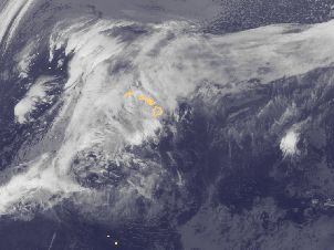 Nordwestlich von Hawaii befindet sich der tropische Sturm 'Omeka'. In seinem Bereich werden Windgeschwindigkeiten von 80 km/h erreicht.