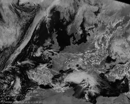 Auf dem heutigen Satellitenfoto sind vor allem im südlichen Europa vielfach Quellwolken zu erkennen, die dort gebietsweise für Schauer und örtlich auch für Gewitter sorgen. Auch in Osteuropa ist es verbreitet leicht unbeständig und es können sich vereinzelt Schauer und einzelne Gewitter bilden. Weitgehend freundlich und trocken ist es dagegen von Großbritannien über die Beneluxstaaten, das nördliche Deutschland und weiter bis in die Südhälfte von Skandinavien.
