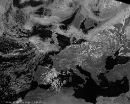 Auf dem heutigen Satellitenbild zeigen sich über Europa vor allem viele dichte Wolken über Teilen von Großbritannien und von Süden Skandinaviens aus bis in den Osten Europas, hier herrscht verbreitet sehr wechselhaftes Wetter mit möglichen Schauern oder Gewittern. Freundlich und trocken ist es meist in einem breiten Streifen von Frankreich, über Italien und mit Ausnahme vom südwestlichen Spanien auch im Mittelmeerraum.