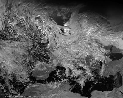 Das heutige Satellitenfoto zeigt vielfach dichte Wolken über weiten Teilen Europas. Tiefdruckeinfluss sorgt vor allem in Italien, den Alpenstaaten bis in die Osthälfte Deutschlands und weiter nach Polen für zeitweise sehr nasses Wetter. Meist freundlich und trocken ist es vom Schwarzen Meer bis zum östlichen Mittelmeer und auch zum größten Teil im übrigen Mittelmeerraum.