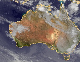 Auf dem heutigen Satellitenfoto von Australien zeigen sich im Osten von Australien gebietsweise dichte Wolken, die vor allem in den küstennahen Regionen für vielfach kräftigen Regen sorgen. Auch im äußersten Norden des Kontinents bringt ein Tief teils kräftigen Regen. Sonst herrscht in Australien aber überwiegend trockenes und freundliches Sommerwetter.