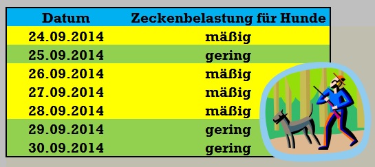 Durch den Regen am Wochenende und das feuchte Wetter in der Woche bleibt es aktuell bei einer mäßigen Hundezeckenbelastung.