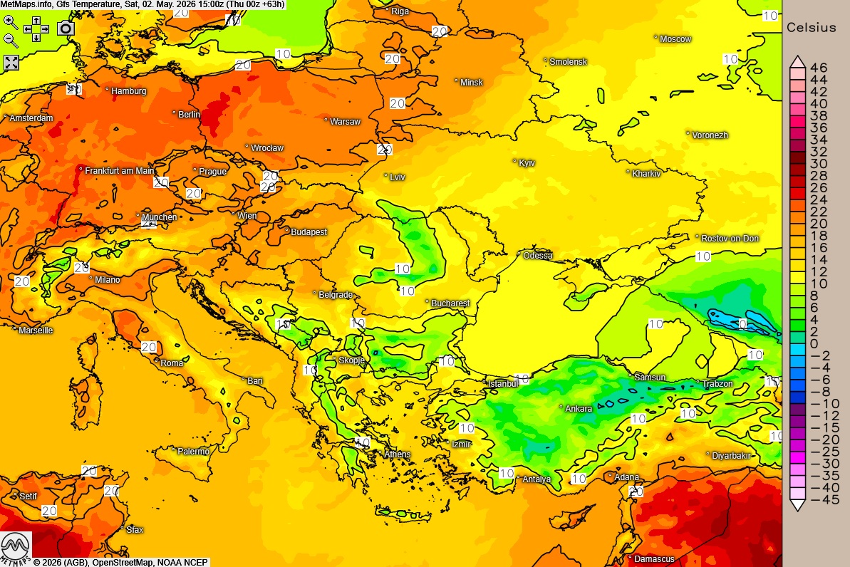 Dies führt zu der ungewöhnlichen Situation, dass es in deutschen Städten derzeit deutlich wärmer ist als in den klassischen Sonnenzielen des Südostens: Während im Westen und Süden Deutschlands verbreitet angenehme Höchstwerte von 23 °C bis 25 °C gemessen werden, müssen sich die Menschen in Athen auf deutlich kühlere 17 °C bis 18 °C einstellen.