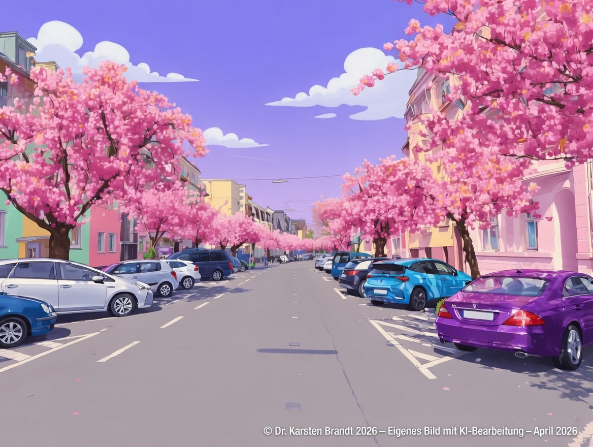 Hier das Bild aus Bonn, aus der Prof. Neu Allee in Beuel in der KI-Pop-SCI-Fassung basierend auf einem Originalbild.