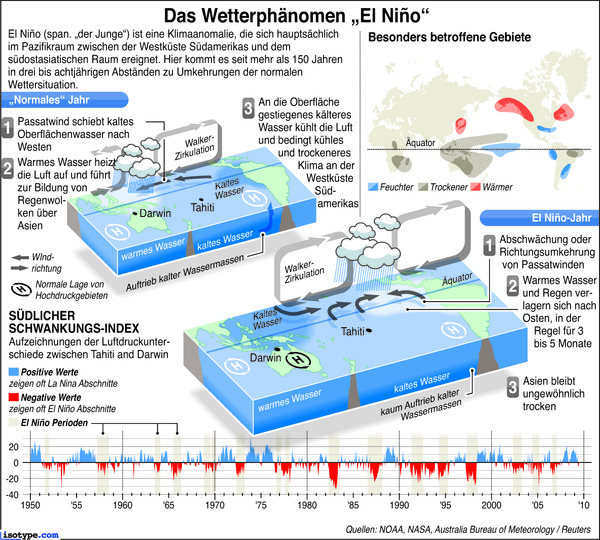 Alle Anzeichen sprechen für einen starken El-Nino. Donnerwetter.de hat dies schon seit mehreren Wochen vorhergesagt. Inzwischen sind weite Teile des Pazifik zu warm und die Klimaschaukel beginnt zu schwingen. Die Auswirkungen werden weltweit zu spüren sein, denn eine Dürre in Indonesien, aber auch in Indien ist durch ausbleibenden Monsun zu befürchten. Auch in Südamerika wird es erhebliche Ernteeinbußen geben. Lokale Unruhen und eine Verteuerung der Agrarpreise sind zu befürchten.