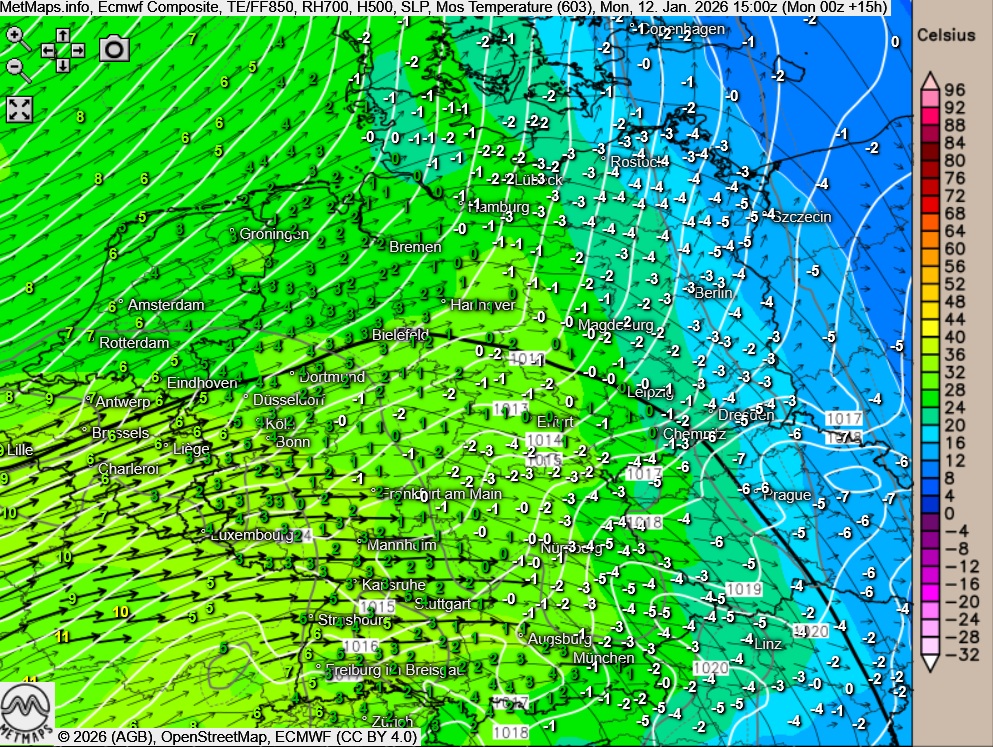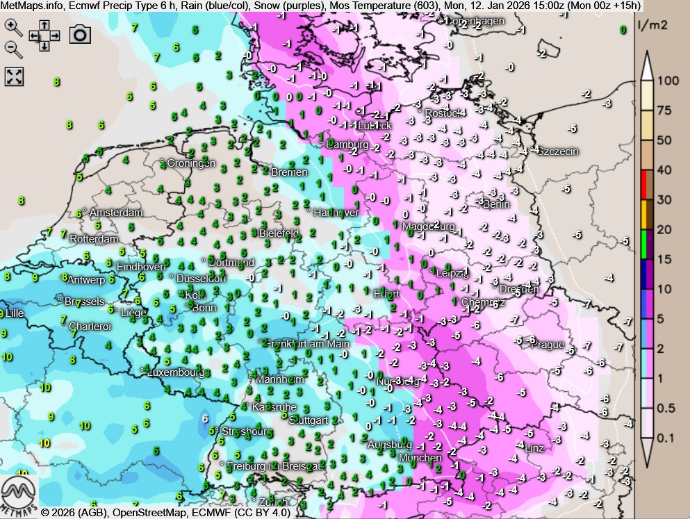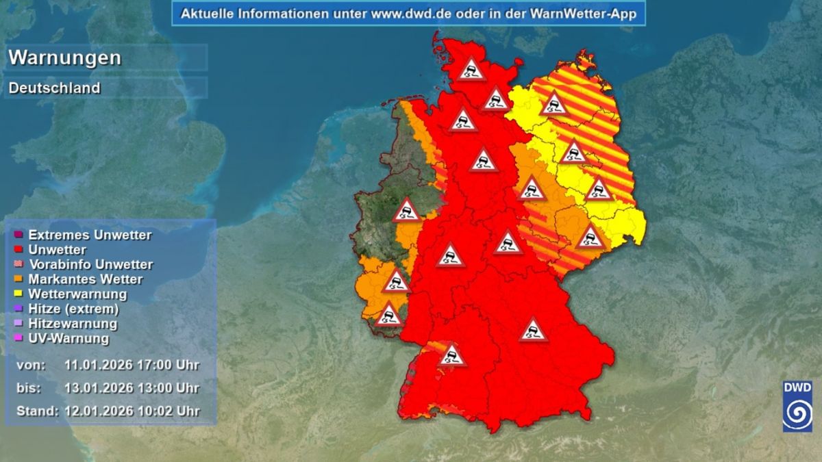 Am Vormittag und Nachmittag breitet sich gefrierender Regen zunächst aber noch in Baden-Württemberg, Bayern, Sachsen-Anhalt und Thüringen aus. Stellenweise betroffen sind zudem Schleswig-Holstein, Hamburg und Mecklenburg-Vorpommern.