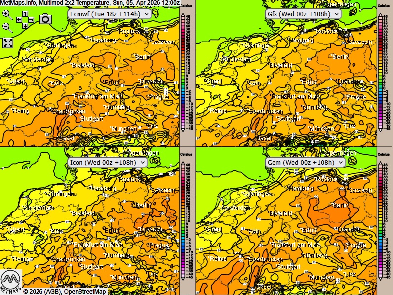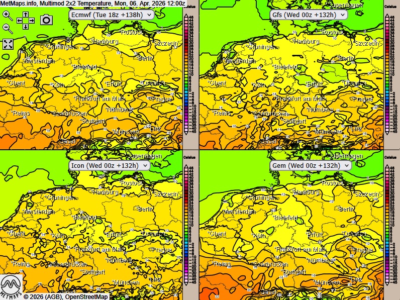 Multimodell Temperaturen Ostermontag