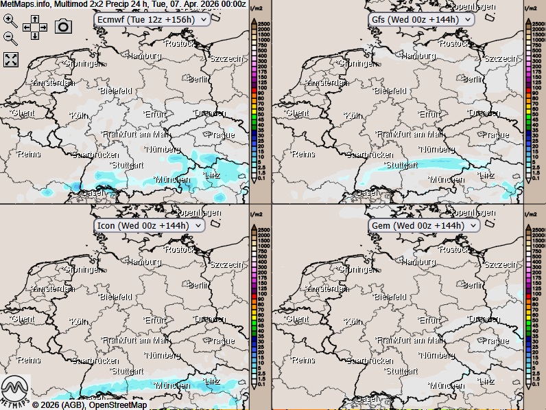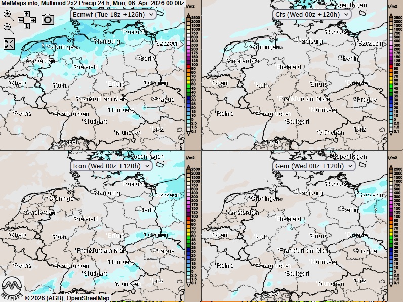 Multimodell 24-Stunden-Regenmengen Ostermontag