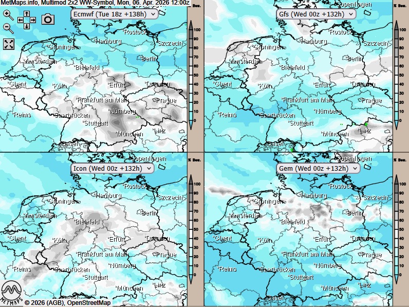 Multimodell Bewölkungsgrad Ostermontag
